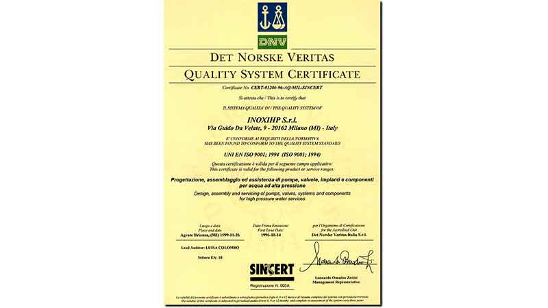 1996年INOXIHP公司就已取得ISO9001質(zhì)量認(rèn)證證書 |